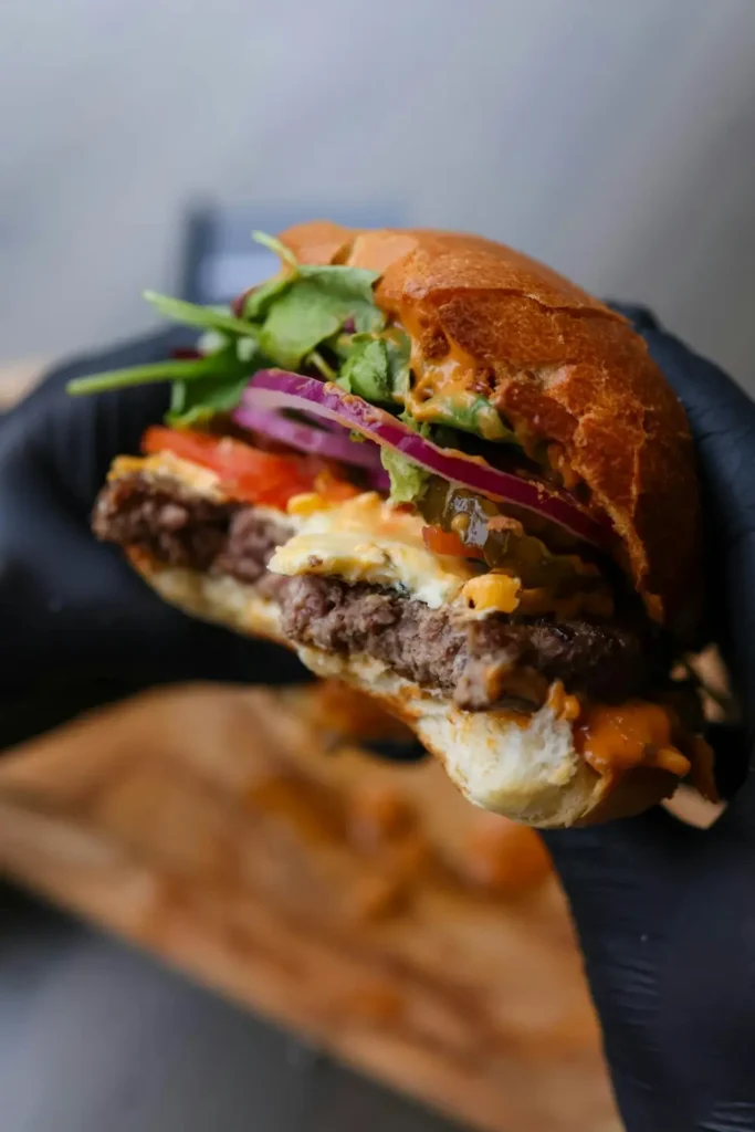 - Loaded: Patty, bacon, cheddar, jalapeños, crispy onions